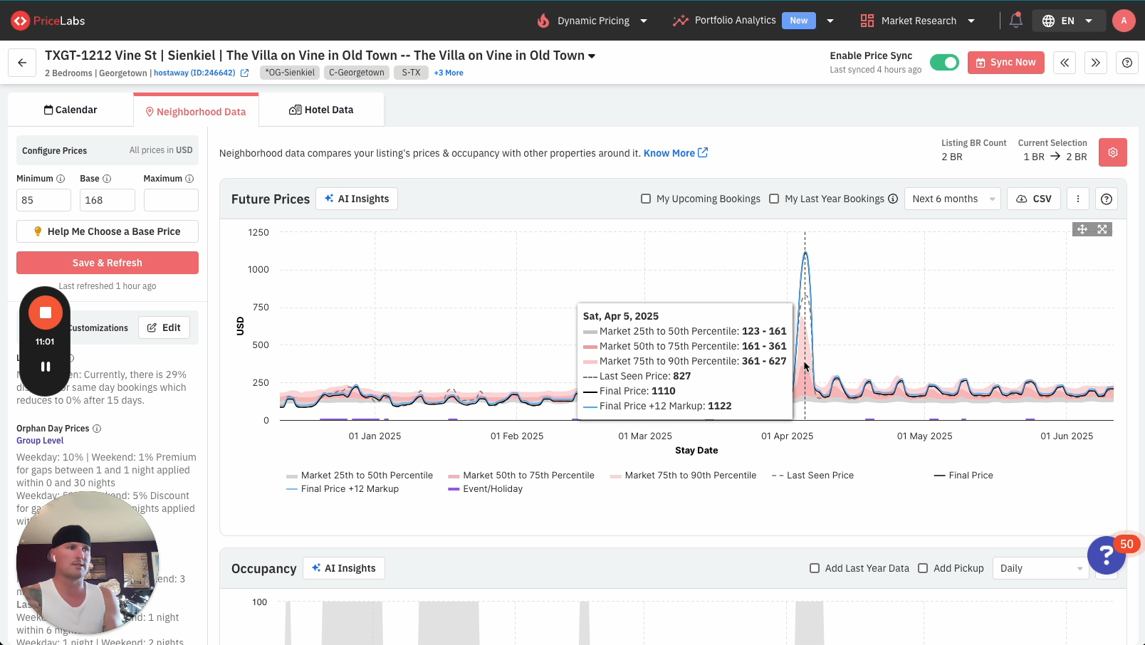 But check this out - during a big concert weekend, while the 90th percentile was at $627, we booked at $1,122. Almost double! And still got the booking because we'd built up the right foundation.