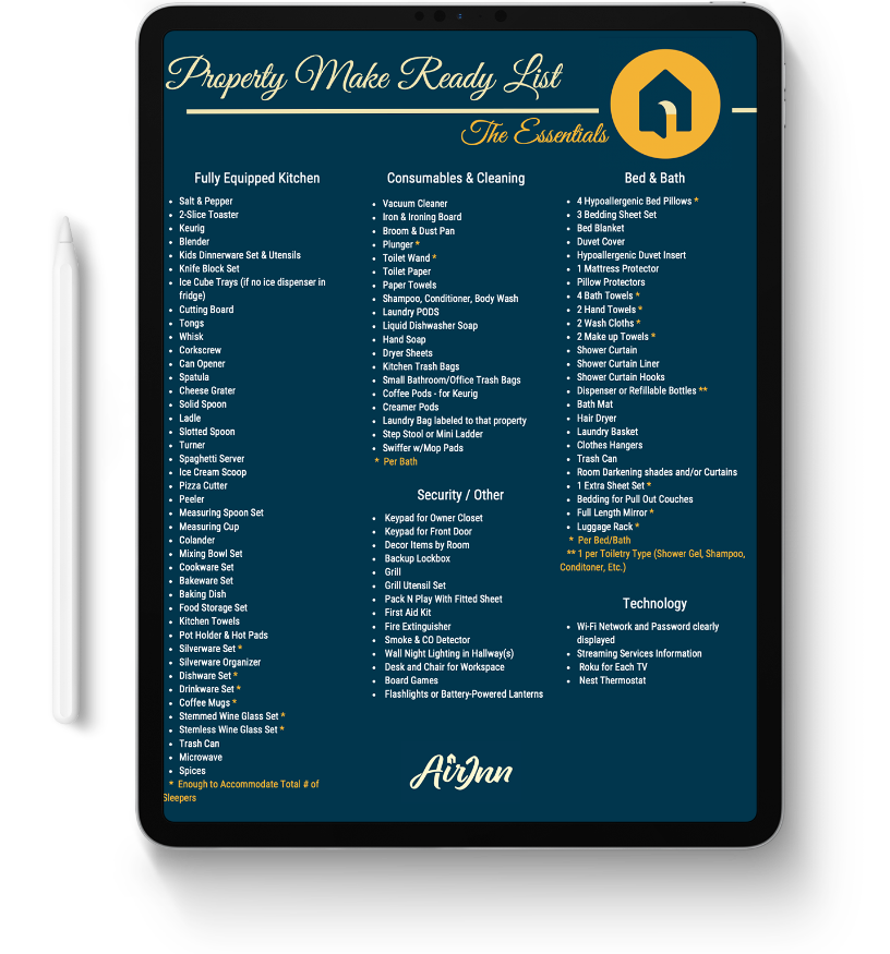 I put together this handy "Property Make Ready Checklist" that covers all the essentials (and some fun extras) you need to stock your rental.